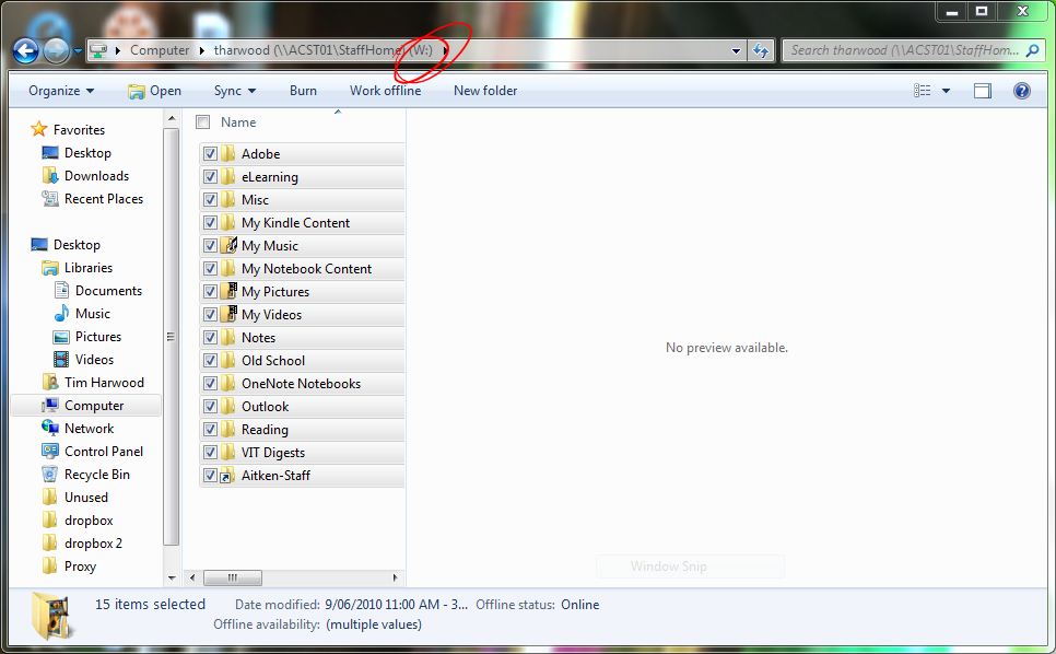 3. Once you have done this the first time your W: and your back-up will look the same. When you want to back it up again, just select everything in the W: and Copy as in step 1 and then select everything in your back-up and click paste as in step 2.