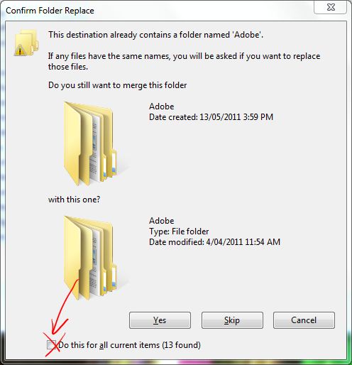 Once again, check the box indicated with the red arrow and then select “Copy and Replace” (circled) and it will overwrite your old back-up with the new one.