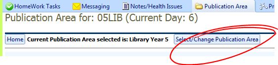 Once you are in the Publications Area you can publish resources for any class (including those that you don’t teach) by clicking the ‘Select/Change Publication Area button.
