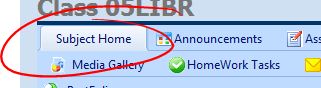 To publish resources in the subject area, rather than the class area, go to the class (by clicking on the hyperlink on your eWorkSpace home screen) and then click the Subject Home button (pictured below) at the top, left-hand side of that screen. You should have the same options – Publication Area, Blog, etc. – but the frame around the page will have changed from blue to green. Publishing in this area will mean that all classes in this subject will have access to these materials.