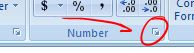 2. Click on the button in the bottom right-hand corner of the numbers bit of the ribbon (pictured below).