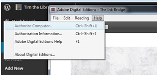 With Adobe Digital Editions open, click Help (I know, right?) and then Authorize Computer.